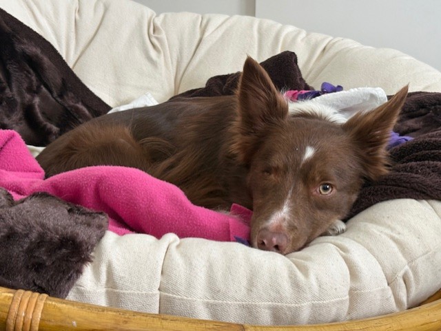 Leela came home and was ready to play frisbee, then took a nap.